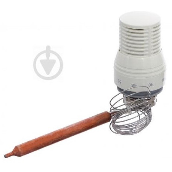 Корпус головки виготовлений із високоякісного пластика білого кольору, який стійкий до температурних впливів та механічних пошкоджень. Виносний капіляр виготовлений із металевої трубки, що забезпечує довговічність та точність передачі температури. Внутрішні елементи розроблені для плавного та надійного регулювання.