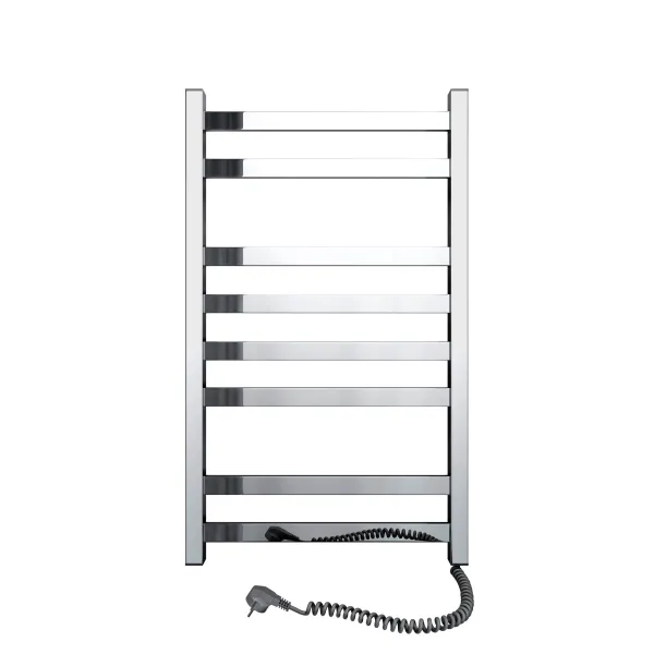 Корпус рушникосушки виготовлений зі зносостійкої нержавіючої сталі, яка має високу стійкість до вологи та температурних коливань. Модель оснащена ізогнутими трубками, що полегшує розміщення рушників та сприяє їх рівномірному нагріванню. Конструкція надійна та ергономічна, що забезпечує довготривалу службу.