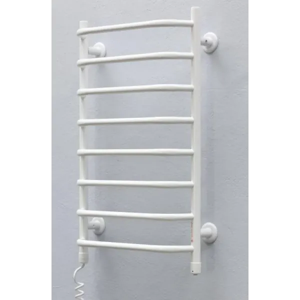 Модель виконана у формі драбинки для настінного монтажу, працює від електромережі та має варіанти підключення шнура зліва або справа. Підходить для ванних будь-якого розміру та дизайну.