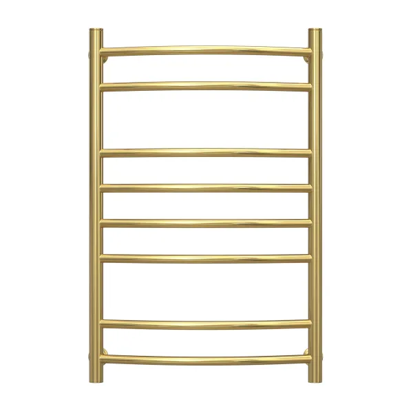 Рушникосушка виготовлена з якісної сталі та має декоративне покриття золотого кольору, яке забезпечує захист від корозії та зберігає привабливий зовнішній вигляд протягом тривалого часу. Конструкція розрахована на експлуатацію у вологих приміщеннях.