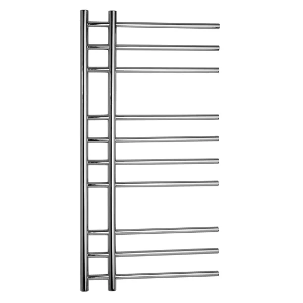 Ця модель має компактну прямокутну форму з глибиною 100 мм, шириною 530 мм і висотою 1000 мм, що дозволяє встановити її в невеликих ванних кімнатах. Рушникосушарник підключається до водяної системи опалення, швидко нагріваючи поверхню для сушіння тканин. Він ідеально пасує для квартир, будинків чи комерційних об'єктів, де потрібна стабільна циркуляція теплоносія та захист від вологи.