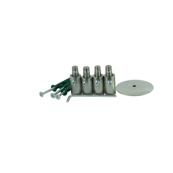 Комплект кріплень NAVIN Квадро виготовлений із нержавіючої сталі та призначений для настінного монтажу рушникосушарок серії Квадро українського виробника NAVIN. Нержавіюча сталь забезпечує стійкість до корозії та вологи — матеріал не змінює вигляду навіть за умов постійного перепаду температур у ванній кімнаті. Комплект містить чотири кріплення, що відповідає стандартній кількості точок фіксації для надійного утримання рушникосушарки на стіні.