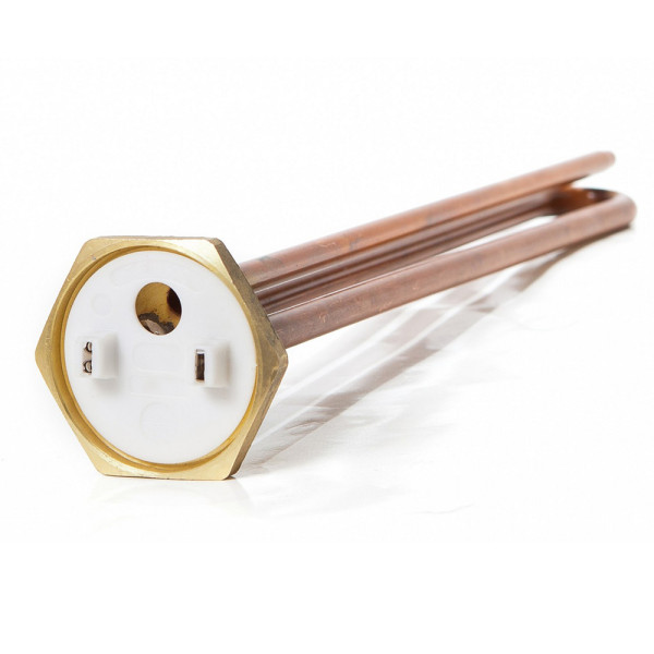 Прямокутна, пряма конструкція цього елемента розроблена для максимально ефективного нагріву води шляхом прямого контакту з водою всередині бака. Різьбове з'єднання дозволяє герметично прикріпити його до бойлера, що зменшує ризик протікання та полегшує монтаж і демонтаж.