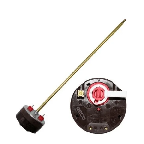 Терморегулятор Reco 20A внутрішній належить до типу механічних регуляторів температури з електричним комутаційним елементом. Його конструкція передбачає наявність вбудованого біметалевого датчика, який реагує на зміну температури води всередині бойлера. При досягненні встановленої межі температури терморегулятор розмикає електричний ланцюг живлення ТЕНу, тим самим запобігаючи перегріванню.