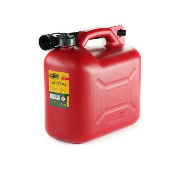 Каністра пластикова СИЛА 10 л HDPE з лійкою — ємність із антистатичного поліетилену високої міцності для транспортування бензину, дизельного палива та олії. Комплектується гнучким шлангом для заправки палива у бак.