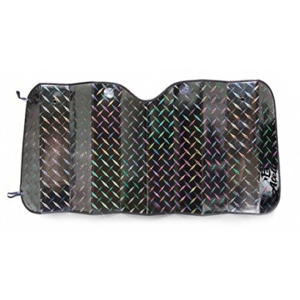 Шторка виготовлена з алюмінію, який добре відбиває сонячне випромінювання і не нагрівається. Конструкція передбачає кріплення на гачках, що забезпечує щільне прилягання до лобового скла. Шторка легко складається для компактного зберігання в автомобілі.
