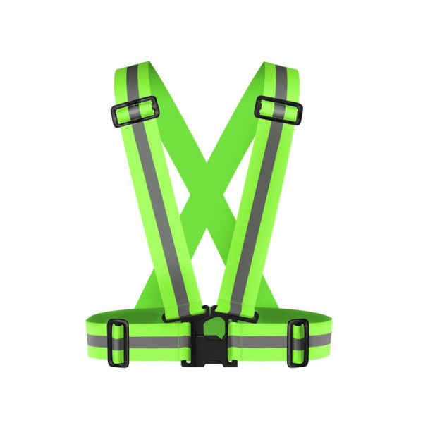 Одягніть лямки через плечі та відрегулюйте довжину для зручної посадки. Переконайтесь, що світловідбивні смуги розташовані рівномірно на грудях і спині. Використовуйте щоразу, коли перебуваєте на дорозі або поблизу транспорту в умовах слабкого освітлення. Зберігайте в сухому місці.