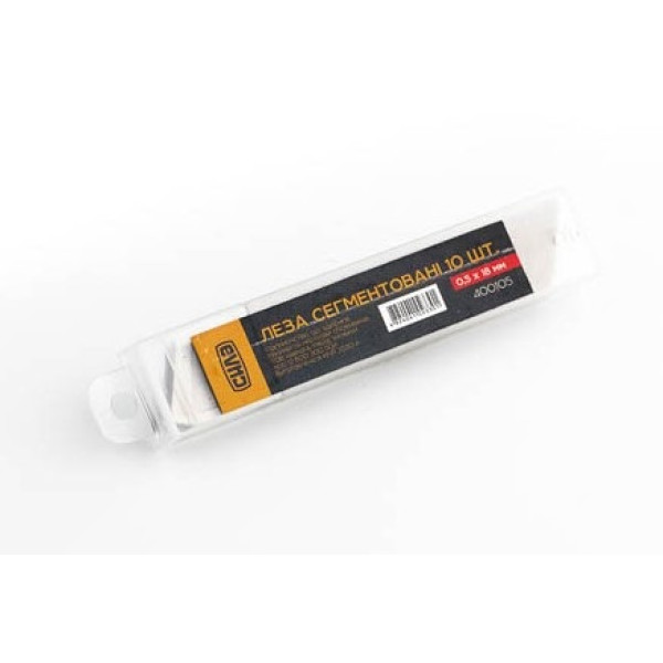 Лезо сегментоване СИЛА 18 мм 0,5 мм (10 шт.) — комплект із 10 змінних лез з високовуглецевої сталі для канцелярських та будівельних ножів. Ширина 18 мм, товщина 0,5 мм. Поставляється в пластиковому блістері.