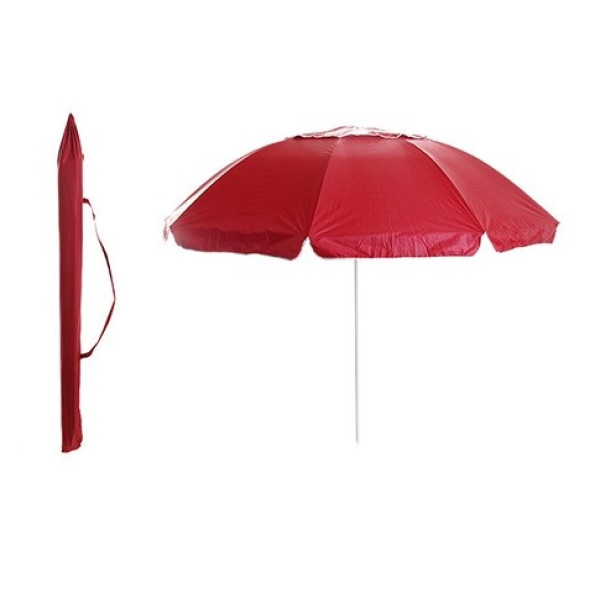 Парасолька пляжна СИЛА 2,2 м червона — пляжна парасолька з похилим механізмом, вітровим клапаном і куполом діаметром 2,2 м із нейлону 170Т на 8 спицях. Металевий корпус зі штангою розміром 19/22 мм. У комплекті чохол.