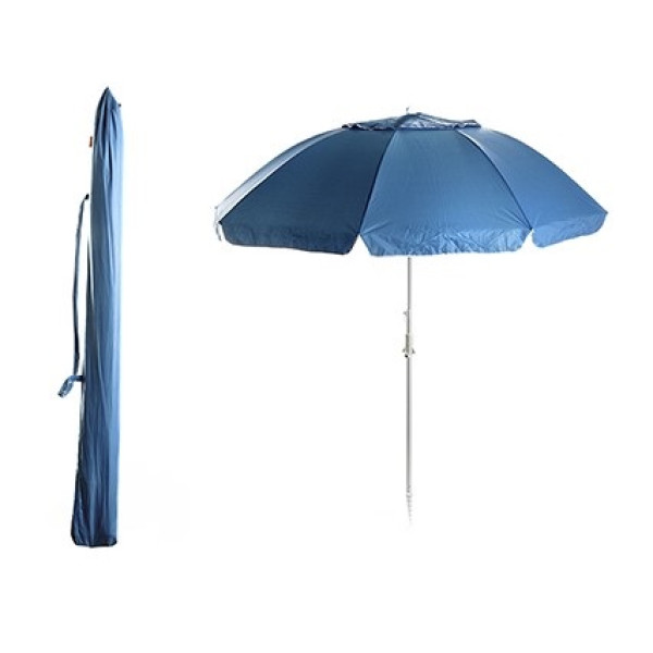Парасолька пляжна СИЛА 2,2 м блакитна — посилена пляжна парасолька з похилим механізмом, вітровим клапаном та гвинтом для кріплення у ґрунті. Купол діаметром 2,2 м із нейлону 170Т на 8 спицях, штанга розміром 28/32 мм. У комплекті чохол.