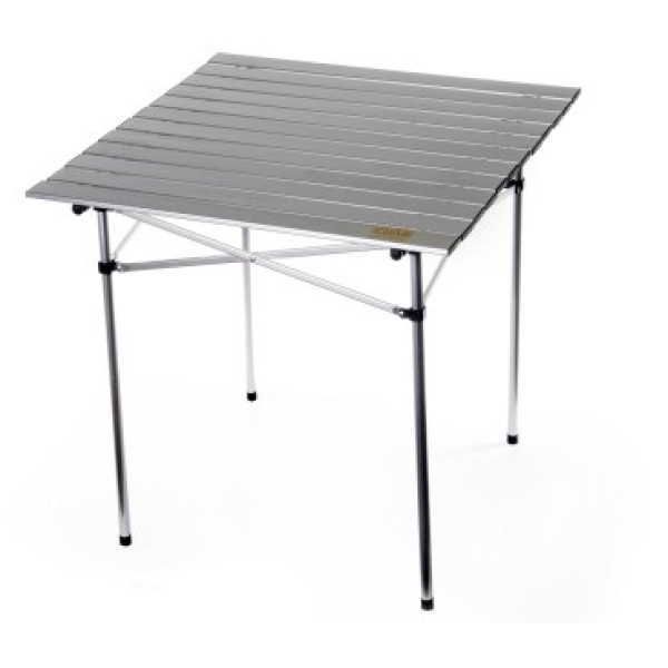 Розкладний стіл розміром 70 х 70 х 68 см повністю виготовлений з алюмінію — як каркас, так і стільниця з ламелей. Алюмінієві ламелі товщиною 10 мм створюють міцну робочу поверхню, а профіль каркасу 19 мм забезпечує стійкість конструкції. Максимальне навантаження — 40 кг. Алюмінієвий корпус робить стіл значно легшим за аналоги зі сталі, що особливо зручно при перевезенні та переміщенні. Квадратна форма стільниці 70 х 70 см дозволяє комфортно розміститись за столом компанії з 4 осіб.