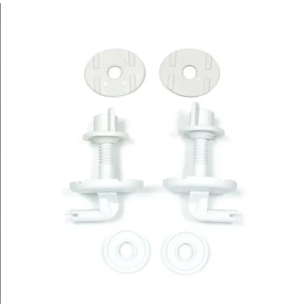 Кріплення виготовлено у вигляді комплекту пластикових деталей, які надійно фіксують кришку унітазу до основи. Його застосовують для заміни або ремонту старих або пошкоджених кріплень. Конструкція розроблена для тривалого використання в побутових умовах, забезпечуючи стабільність і зручність у щоденному використанні унітазу.
