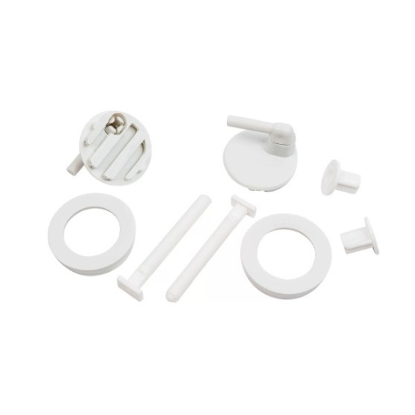 Кріплення представлено у вигляді комплекту деталей, що дозволяє швидко і без зайвих зусиль прикріпити кришку до унітазу. Конструкція добре пристосована для різних типів унітазів завдяки універсальній формі та розмірам. Воно ідеально підходить як для домашнього використання, так і для громадських туалетів, забезпечуючи потрібний рівень надійності та комфорту.