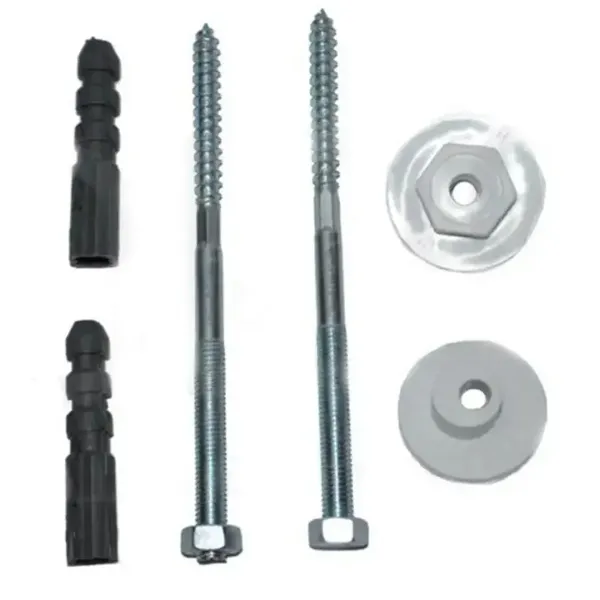 Кріплення виготовлене з міцного металевого сплаву, що забезпечує оптимальну жорсткість і надійність під час фіксації умивальника. Воно складається з двох шпильок, які легко вкручуються у стіну або монтажну поверхню. Поверхня не має додаткових покриттів, однак її якість відповідає вимогам зносостійкості для сантехнічного використання.