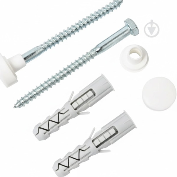 Кріплення виготовлене з міцного металу, що забезпечує довговічність і надійність експлуатації. Основними елементами є анкерні болти і дюбелі, які надійно фіксують унітаз до підлоги. Металеве покриття захищене від корозії, що продовжує термін служби виробу навіть у вологих приміщеннях.