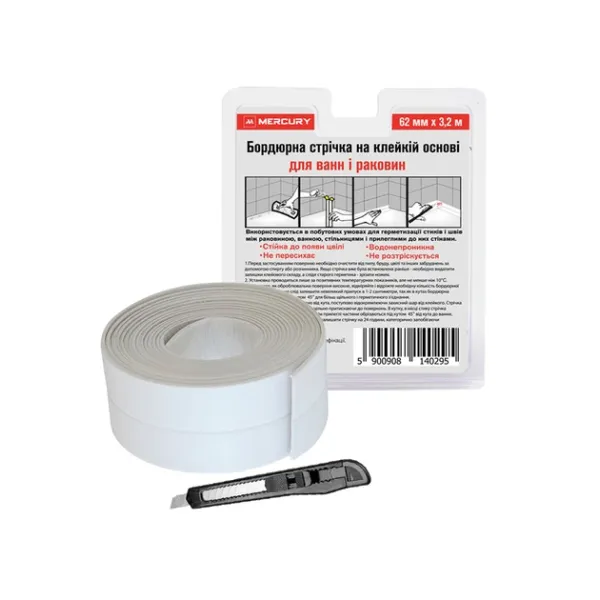 Стрічка MERCURY 41 мм є практичним рішенням для надійної герметизації стиків ванни. Вона поєднує в собі зручність монтажу, довговічність і водонепроникність, забезпечуючи комфорт і захист від пошкоджень. Цей продукт відповідає сучасним вимогам якості і довговічності, що робить його вигідним вибором для користувачів і професіоналів.