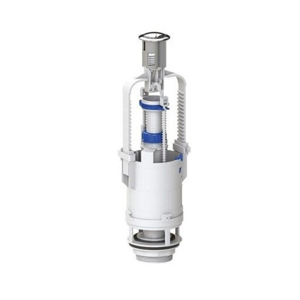 Цей механізм оснащений двокнопковим управлінням зливу (економний та повний) і підходить для більшості бачків типу «компакт». Конструкція має широкий діапазон регулювання висоти, що дозволяє адаптувати її під різні моделі унітазів. Надійний механізм забезпечує стабільну роботу навіть при мінімальному рівні води.