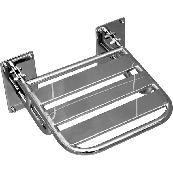 Міцна хромована нержавіюча сталь забезпечує довговічність та здатність витримувати значні навантаження, а хромоване покриття гарантує стійкість до корозії та легкий догляд. Відкидна конструкція робить стілець ідеальним рішенням для невеликих ванних кімнат, дозволяючи економити простір, коли стілець не використовується.