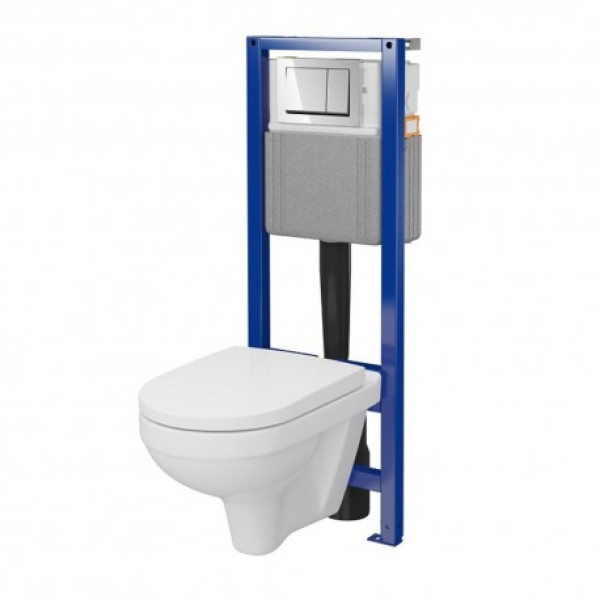 Як замовити Комплект інсталяції Cersanit СЕТ C45 SYSTEM 40 механічна + підвісний унітаз ZIP 413 з сидінням дюропласт вільне падіння + кнопка ENTER II глянцевий хром?