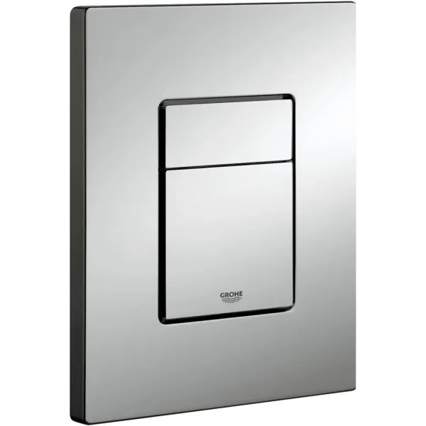 Змивна панель виготовлена з високоякісного ABS-пластику з сліпучим хромованим покриттям GROHE Long-Life Shine, яке забезпечує довготривалий блиск, захист від подряпин і легкість очищення. Квадратна форма панелі надає їй елегантного та сучасного вигляду, який гармонійно вписується в різні інтер'єрні стилі. Пневматична система управління складається з двох кнопок для активації різних режимів змиву. Велика кнопка забезпечує повний об'єм змиву (6 л або 4,5 л), мала — зменшений об'єм (3 л) для економії води. Функція Start-Stop дозволяє перервати змив у будь-який момент, просто натиснувши кнопку знову. Конструкція панелі передбачає простий монтаж на стандартні інсталяційні системи GROHE за допомогою системи EasyConnect як у вертикальному, так і в горизонтальному положенні без спеціальних інструментів. Технологія GROHE WaterSaving® інтегрована в конструкцію для забезпечення оптимального змиву при зменшеній витраті води до 50%.