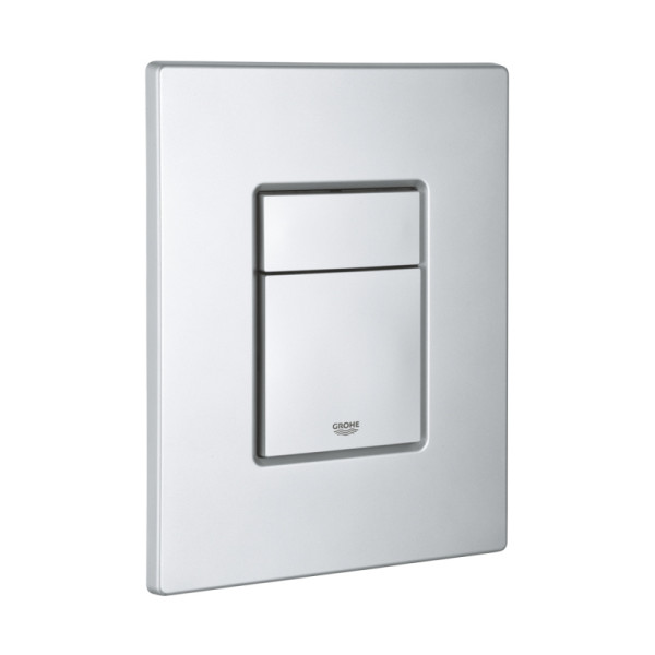 Змивна панель виготовлена з високоякісного ABS-пластику з титановим покриттям GROHE Long-Life Shine, яке забезпечує довготривалу надійність, захист від подряпин і легкість очищення. Унікальною особливістю титанової поверхні є спеціальний захист від відбитків пальців, який зберігає панель чистою та охайною навіть при інтенсивному використанні. Це означає, що сліди від доторків практично не помітні на поверхні, що робить панель ідеальною для громадських приміщень та сімейних ванних кімнат. Квадратна форма панелі надає їй елегантного та сучасного вигляду, який гармонійно вписується в різні інтер'єрні стилі. Титановий колір створює благородний відтінок, який прекрасно поєднується як з теплими, так і з холодними кольорами в інтер'єрі. Пневматична система управління складається з двох кнопок для активації різних режимів змиву. Велика кнопка забезпечує повний об'єм змиву, мала — зменшений об'єм для економії води. Функція старт/стоп дозволяє зупинити змив у будь-який момент, просто натиснувши кнопку повторно. Конструкція панелі передбачає простий монтаж на стандартні інсталяційні системи GROHE як у вертикальному, так і в горизонтальному положенні. Технологія GROHE WaterSaving інтегрована в конструкцію для забезпечення неперевершеного потоку при економному використанні води.