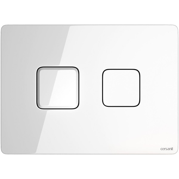Накладна пневматична панель для змивання Accento Square складається з білого скляного корпуса з двома кнопками та призначена для змивних бачків прихованого монтажу. Проста в експлуатації панель дає змогу керувати дворежимною системою змивання. Біле скло створює чистий, світлий та свіжий вигляд, додаючи простору та легкості інтер'єру ванної кімнати. Монохромна кнопка додає вишуканого акценту до загального вигляду ванної кімнати та прекрасно підходить для різних тем дизайну інтер'єру. Квадратна форма кнопок створює сучасну геометричну естетику. Скляний корпус з пластиковими елементами забезпечує преміальний вигляд та надійність. Пневматична система забезпечує довговічність та надійність роботи. Панель призначена для використання з інсталяціями Aqua 52, а також з інсталяціями, оснащеними системами Fresh від Cersanit. Горизонтальний монтаж забезпечує зручність встановлення.