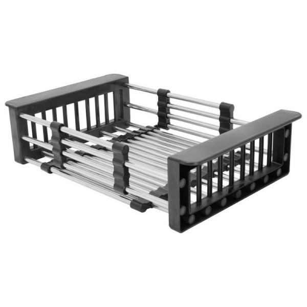 Ця корзина на мийкку — практичний аксесуар для кухонного простору, що допомагає організувати зберігання різних речей. Вона призначена для зручного розміщення на мийці та забезпечує комфортне використання кухонних приладів і аксесуарів. Надійна конструкція і стильний чорний колір поєднуються для створення функціонального та естетично привабливого елемента інтер'єру.