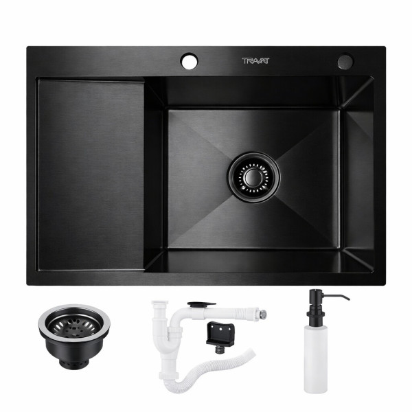 Мийка KRAFT Handmade ЧОРНА 650*480*230 (корзина + кріплення + сифон + дозатор)