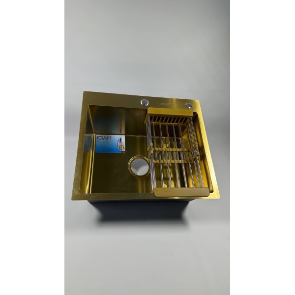 Мийка KRAFT Handmade Nano Gold Decor 540*480*230 (корзина + кріплення + сифон + дозатор)