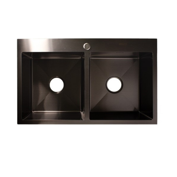 Мийка KRAFT Handmade подвійна ЧОРНА 780*480*230 + корзина ЧОРНА
