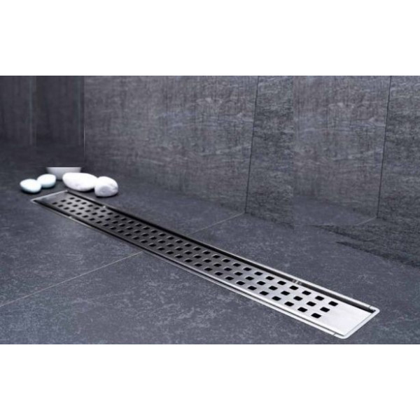 Відкриті душові зони без піддону, де металевий вигляд зливної смуги є частиною дизайну інтер'єру. Формат 550 мм підходить для стандартних кабін 80×80 і 80×90 см при монтажі вздовж короткої або довгої стіни. Решітка Grid із нержавіючої сталі добре поєднується з матовими металевими поверхнями, графітовою та сірою плиткою, а також з мінімалістичними інтер'єрами в стилі лофт або індустріальному.