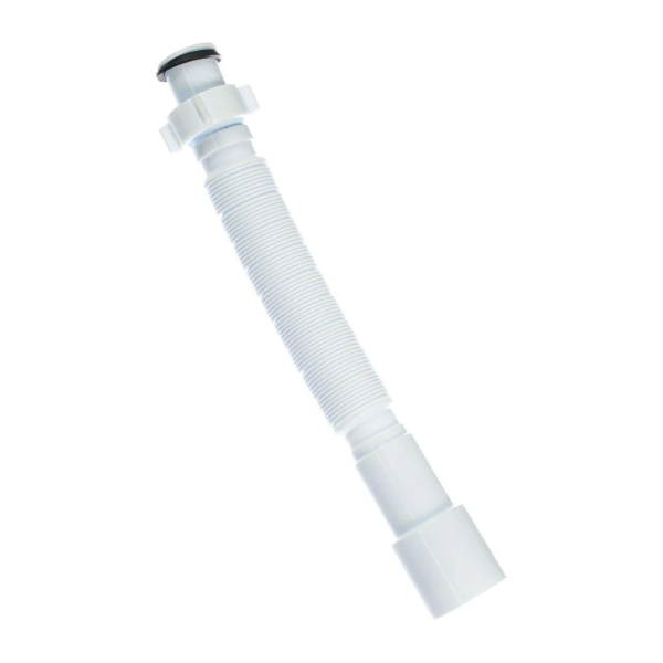Гнучка гофрована труба Bakimay PL 1304 — з'єднувальний елемент для підключення сифона умивальника до каналізаційної мережі. Діаметр підключення — 32 мм з накидною гайкою 1 1/4" та конусною прокладкою, вихід у каналізацію — 40/50 мм. Перехідна конструкція дозволяє підключити сифон із патрубком 32 мм до каналізаційної труби більшого діаметра. Виготовлена з пластику. Виробництво — Туреччина.