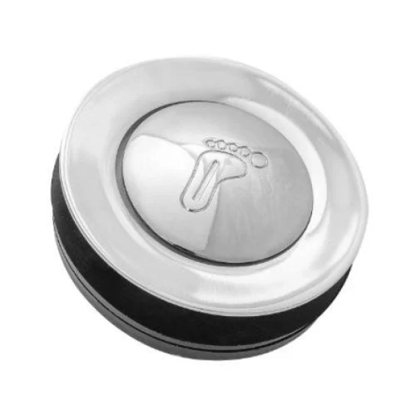 Клапан click-clack керує зливом натисканням: одне натискання — закриває злив, друге — відкриває. Управління ногою, без нахилів. Кріпиться латунною гайкою та двома гумовими прокладками. Підходить для стандартних піддонів із зливним отвором 43 мм.