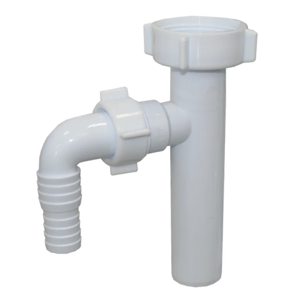 Пластиковий патрубок із вбудованим відведенням для підключення зливного шланга пральної або посудомийної машини до каналізаційного патрубка Ø40 мм. Вихід у каналізацію Ø32 мм, підключення шланга пральної машини 3/4" або 1". Довжина 15,5 см.