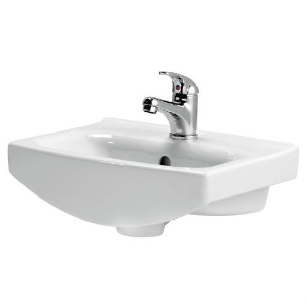 Колекція Cersania від Cersanit призначена для того, щоб полегшити підтримання гігієни та якнайефективніше задіяти простір. Умивальники Cersania виготовлені з високоякісної керамічної маси та покриті глазур'ю, завдяки чому поверхня легко очищається навіть без використання сильнодіючих мийних засобів. Універсальність білого кольору робить керамічні вироби ідеально сумісними з іншою продукцією бренду та іншим обладнанням ванної кімнати. Умивальник монтується на тумбу або підвішується безпосередньо на стіну з декоративним сифоном.