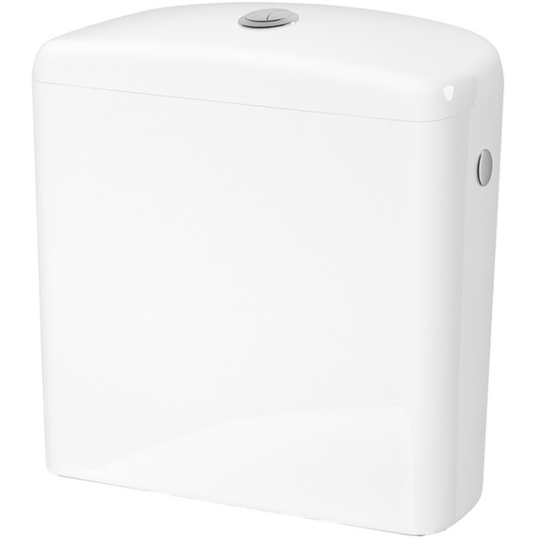 Бачок виготовлений із високоякісного санітарного фаянсу польського виробництва з глянцевою білою поверхнею кольору Cersanit White. Матеріал стійкий до підвищеної вологості, характерної для ванних кімнат, легко очищується та не боїться впливу хімічних миючих засобів. Конструкція розроблена для надійного встановлення на чашу унітазу з відстанню між кріпленнями 145 мм. Боковий підвід води дозволяє зручно підключити бачок до системи водопостачання. Важлива особливість: бачок постачається без зливної арматури (механізмів зливу та набору води), що дає можливість самостійно обрати та придбати арматуру потрібної якості та функціональності. Це може бути економічний варіант або преміальна арматура з додатковими функціями — вибір залежить від потреб та бюджету.