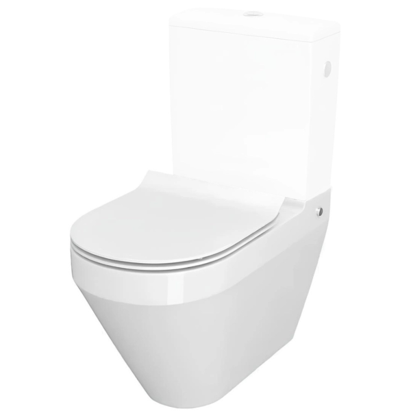 Унітаз виготовлений із високоякісної кераміки польського виробництва з бездоganною білою глянцевою поверхнею, яка легко очищується та стійка до забруднень. Овальна форма чаші забезпечує комфортне використання та елегантний зовнішній вигляд. Підвісна конструкція кріпиться до прихованої інсталяційної системи за стіною, що дозволяє приховати всі комунікації та створити мінімалістичний вигляд санвузла. Відсутність контакту з підлогою значно полегшує прибирання та створює ефект візуальної легкості простору. Преміальне дюропластове сидіння Slim відрізняється високою щільністю, стійкістю до механічних пошкоджень та комфортною температурою поверхні. Механізм плавного опускання (мікроліфт) виключає шум та удари кришки об чашу, захищаючи кераміку від пошкоджень та забезпечуючи комфорт у використанні.