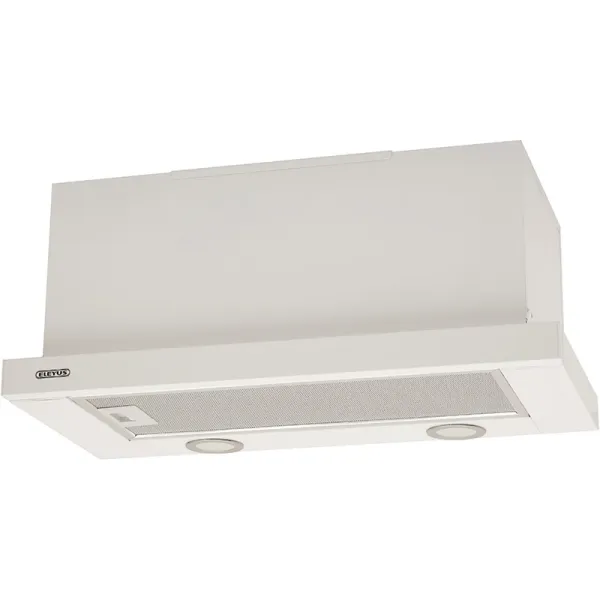 Керування максимально зручне — вмикати витяжку можна двома способами: висуванням телескопічної панелі або механічними клавішами на корпусі. Дві швидкості дозволяють обрати інтенсивність залежно від того, що готуєте. Перша підходить для легкого готування, друга — коли потрібна максимальна потужність.