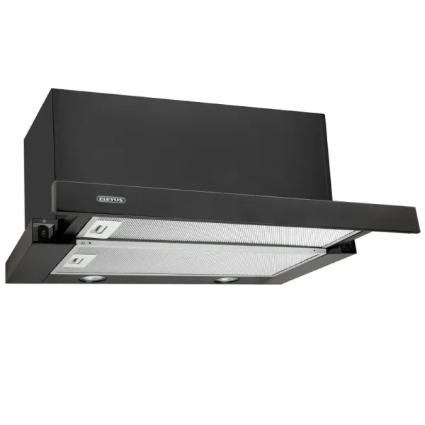 Скляна передня панель додає естетики, а телескопічний механізм розширює площу захоплення повітря під час готування. Висувна панель працює на направляючих нового покоління — вони не липнуть від жиру навіть після тривалої експлуатації і зберігають плавний хід панелі. Корпус покритий порошковою фарбою, яка захищає метал від корозії та подовжує термін служби.