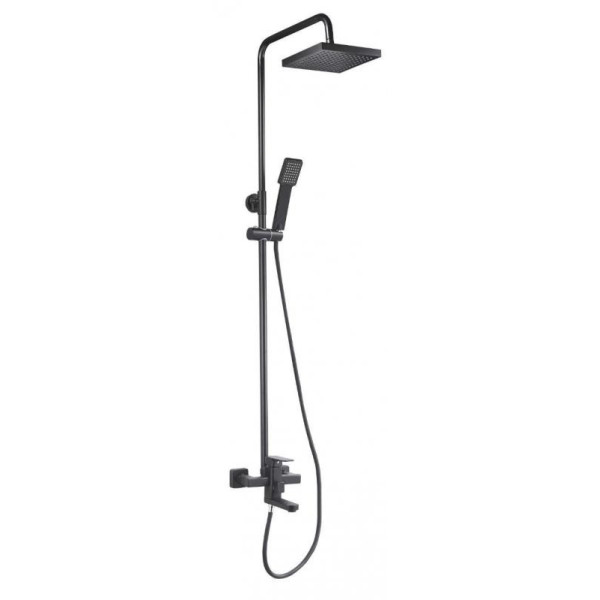 Корпус душової системи виготовлений із високоякісного металу з антикорозійним покриттям, що забезпечує довговічність та естетичний вигляд. Основні елементи системи: змішувач, душова штанга, верхній душ, ручна лійка та шланг. Покриття стійке до корозії, вологи та зношування, що дозволяє зберігати привабливий зовнішній вигляд навіть після тривалого використання.