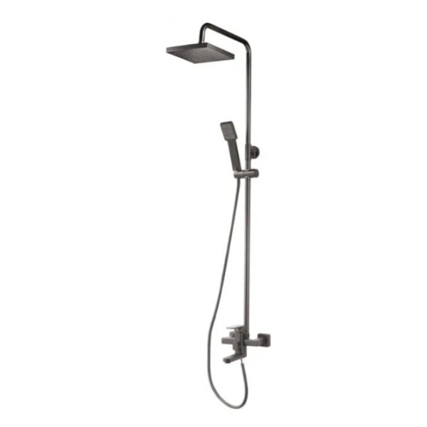 Корпус душової системи виготовлений із високоякісного металу з антикорозійним покриттям, що забезпечує довговічність та естетичний вигляд. Основні елементи системи: змішувач, душова штанга, верхній душ, ручна лійка та шланг. Покриття стійке до корозії, вологи та зношування, що дозволяє зберігати привабливий зовнішній вигляд навіть після тривалого використання.
