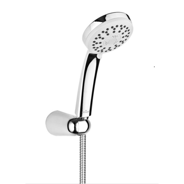 - Зручний настінний тримач забезпечує комфортне регулювання висоти та кута нахилу ручного душа.