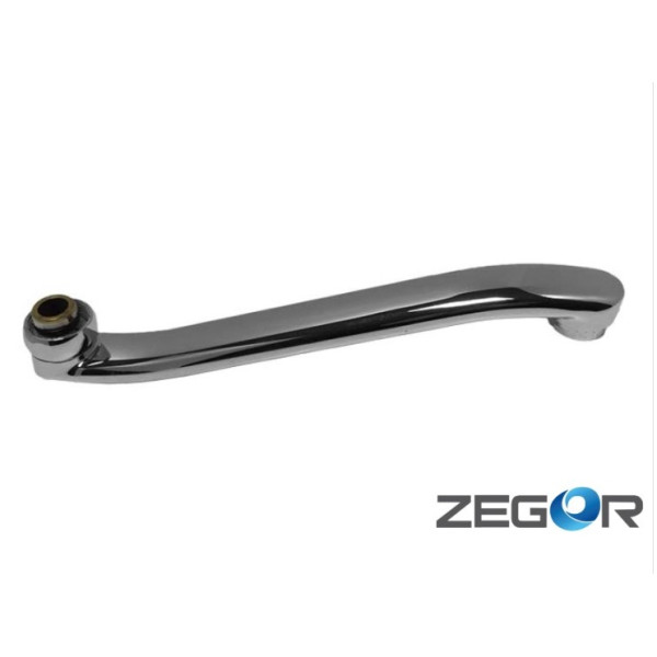 Гусак виготовлений із металу, обробленого антикорозійним покриттям. Основними елементами конструкції є фігурна трубка, що забезпечує плавний потік води, та різьбове з’єднання для простого встановлення. Покриття захищає виріб від іржі та пошкоджень при тривалій експлуатації у вологих умовах.