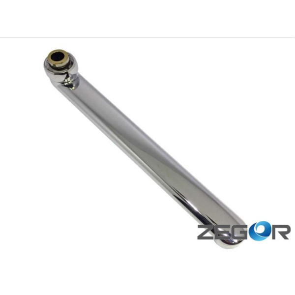 Гусак виготовлений із металу, обробленого антикорозійним покриттям. Основними елементами конструкції є плоска трубка, що забезпечує плавний потік води, та різьбове з’єднання для простого встановлення. Покриття захищає виріб від іржі та пошкоджень при тривалій експлуатації у вологих умовах.