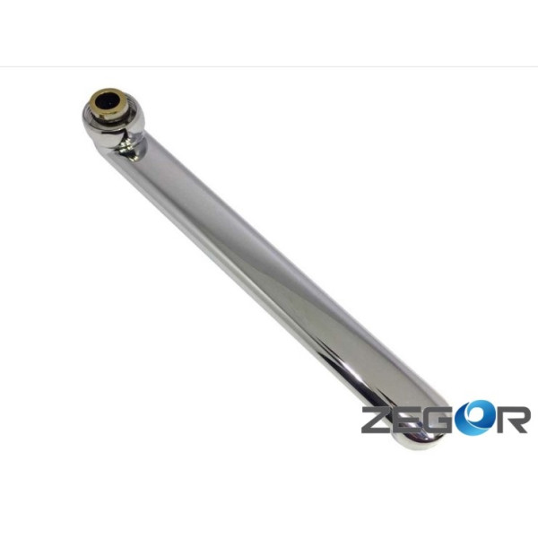 Гусак виготовлений із металу, обробленого антикорозійним покриттям. Основними елементами конструкції є плоска трубка, що забезпечує плавний потік води, та різьбове з’єднання для простого встановлення. Покриття захищає виріб від іржі та пошкоджень при тривалій експлуатації у вологих умовах.