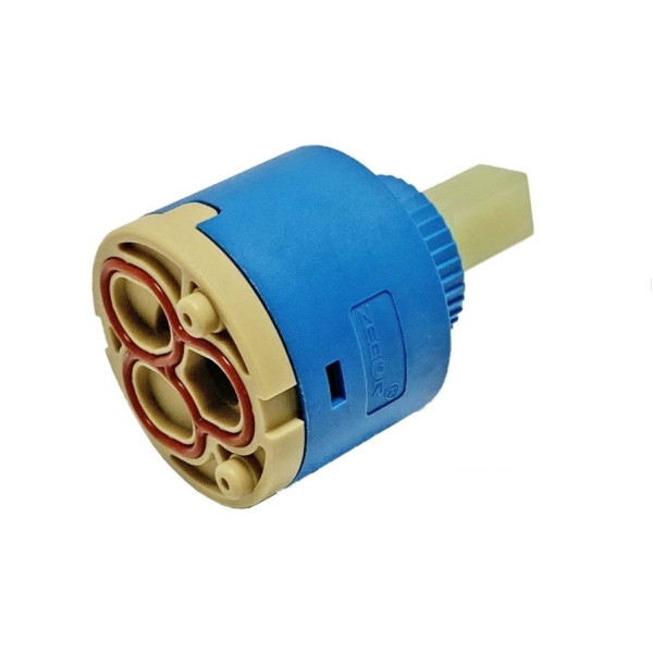 Картрідж виконаний у класичному форм-факторі, призначений для використання в стандартних змішувачах з пластмасовим штоком. Встановлюється всередину корпусу змішувача та дозволяє регулювати потік холодної і гарячої води. Підходить для застосування у побуті, забезпечуючи плавне управління подачею води без протікань та пошкоджень у роботі. Модель характеризується стійкістю до корозії та зношування, що гарантує довгий термін служби.