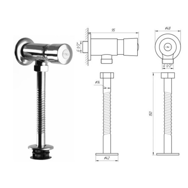Кран-дозатор має компактну конструкцію, що легко інтегрується в систему санітарної техніки. Він встановлюється безпосередньо на пісуарі, забезпечуючи точне дозування води для змиву. Пристрій ідеально підходить для громадських та комерційних санвузлів, де важлива ефективність витрат води та гігієнічність процесу.