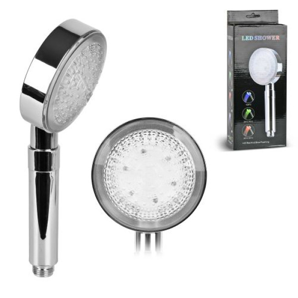 Лійка має ергономічну круглу форму з функцією підсвітки, яка активується при натисканні потоку води. Вона ідеально підходить для домашніх ванних кімнат, допомагаючи створити приємну атмосферу під час прийняття душу. Модель зручна у використанні, легко встановлюється на стандартний душовий шланг.