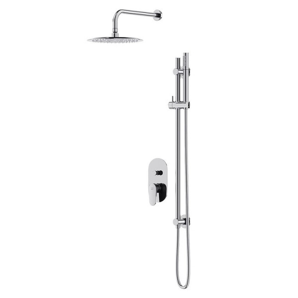 Комплект сантехніки для ванної кімнати, що включає прихований монтажний змішувач з оригінальним дизайном. Призначений для комфортного регулювання температури та напору води у ванні або душі. Поєднує хромовану поверхню з чорною ручкою, додаючи стильний акцент вашому інтер’єру.