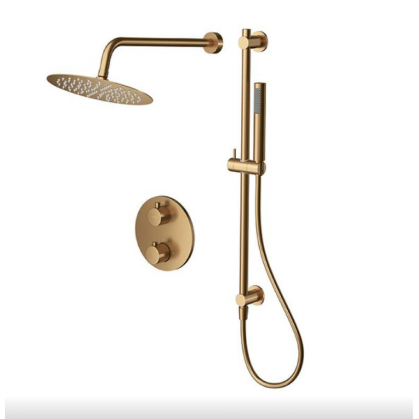 Сет складається з душової системи та термостатичного змішувача, який монтується у стіну. Завдяки прихованому типу встановлення елементи кріплення й підводка води залишаються непомітними, що дозволяє зберегти естетичний вигляд ванної кімнати. Такий комплект ідеально підходить для приватних будинків, квартир та готелів, забезпечуючи стабільний комфорт та безпеку під час прийняття ванни або душу. Модель оснащена функцією підтримки постійної температури води, що мінімізує ризик пошкоджень від перепадів тиску або температури.